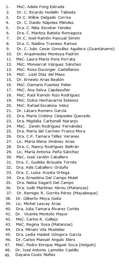 Atentamente, Consejo Asesor revista MEDISAN, Consejo de Dirección CPICM