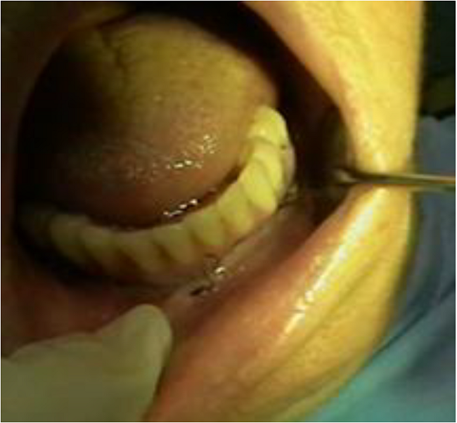Se presenta el caso clínico de un anciano de 65 años de edad, con buena salud e higiene bucal y antecedentes de buena salud general, portador de una prótesis total inferior desde hacía 10 años.