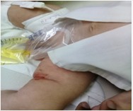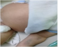 Se presenta el caso clínico de un paciente de 2 meses de edad, quien nació producto de un parto eutócico, a término y normopeso. Se alimentaba con lactancia materna exclusiva y tuvo antecedentes de 2 ingresos previos, uno, por anemia severa y otro, por catarro común. Fue hospitalizado en el Servicio de Terapia Intensiva del Hospital Infantil Sur “Dr. Antonio María Béguez César” por presentar edemas generalizados y ascitis (fig 1).