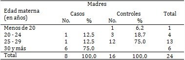 Methods: An analytic study of cases and controls was carried out. The 8 postpartum women who contributed with the same quantity of underweight newborns and as controls 16 of the mothers whose product of the conception had a normal weight in same period were chosen. Among the analyzed variables there were: maternal age, unfavorable obstetric history, associated previous diseases and diseases characterizing pregnancy, gestational age at childbirth and nutritional state.