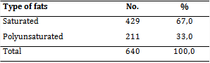Table 3 shows the predominance of patients who consumed saturated fat, 429 representing 67.0%.