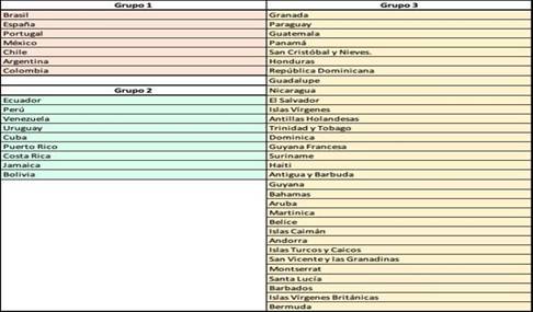 Teniendo en cuenta los criterios de inclusión establecidos en el SIR Iber,8 el análisis de la variación en el número de instituciones de educación superior por país, presentes en cada ranking en los diferentes períodos, refleja algunas características del desarrollo de la actividad investigadora a nivel nacional y permite establecer 3 grupos de países. Cuba se encuentra en el grupo 2 (Fig. 1.), donde se ubican las naciones cuyos centros de educación superior han publicado más de 1 000 trabajos en el período analizado (2014-2018).