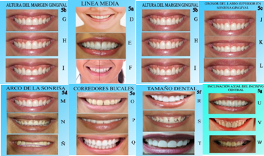 El análisis del contenido estuvo dirigido a establecer lo deseado; después de realizada la lectura flotante de la información recopilada, las carencias identificadas correspondieron a sonrisa gingival, altura del margen gingival, grosor del labio superior en sonrisa gingival, arco de la sonrisa, corredores bucales e inclinación axial del incisivo central.