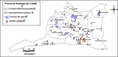 La especie Aedes vittatus se detectó en enero de 2020 en el asentamiento poblacional Ramón de la Yaguas, netamente rural, perteneciente al municipio cabecera de Santiago de Cuba. En el transcurso de los meses desde junio hasta septiembre se evidenció su presencia paulatina en los poblados periféricos El Caney, Siboney, El Cobre, El Cristo y Boniato, colectada preferentemente en tanques bajos en el exterior de las viviendas y en depósitos tanto naturales como artificiales alrededor de estas; también se detectó en 7 áreas de salud del mismo municipio: 30 de Noviembre, Armando García, Josué País, José Martí, Julián Grimau, Frank País y 28 de Septiembre, así como en la zona portuaria de la bahía de Santiago de Cuba. En este período se colecta además en otros 3 municipios: Palma Soriano, San Luis y Guamá.
