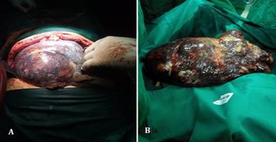 Durante la operación las pérdidas hemáticas excedieron 50 % de la volemia, se transfundieron hemoderivados y se realizó gasometría, la cual mostró acidosis metabólica, hipopotasemia y hematocrito de 0,20 %, que oportunamente fueron corregidos.