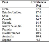 En el Informe de la ONU del 201818 sobre este problema se indican los países con mayores tasas de prevalencia de consumo de marihuana (cuadro).