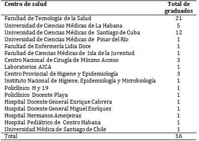 Resulta válido aclarar que se consideró como graduados internos a los profesionales que formaban parte del claustro de la mencionada Facultad y externos, a los que correspondían a otras universidades e instituciones de salud de Cuba y de otros países.
