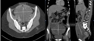Los tumores ováricos en la niñez y la adolescencia ocasionan manifestaciones clínicas inespecíficas y poco sensibles, que no diferencian benignidad de malignidad. Así, entre las más frecuentes figuran el dolor abdominal y la masa palpable.2,7 En las pacientes jóvenes, como la del caso presentado, pueden iniciar con alteraciones menstruales e, incluso, con pubertad precoz si presentan actividad endocrina; sin embargo, el abdomen agudo resulta menos frecuente debido a algunas complicaciones tales como las hemorragias intracapsulares, la infección y la hidronefrosis por compresión del uréter, entre otras.1,2
