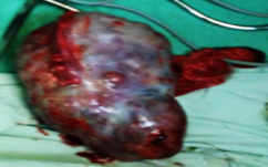 Se realizó la extirpación completa de la masa tumoral y se tomó muestra para el estudio histológico, así como para el análisis del ovario contralateral, del apéndice cecal y el epiplón adyacente (fig. 3).