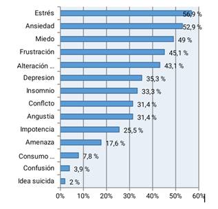 Results: The most relevant symptoms were stress, anxiety, fear and frustration; these have been the result of exposure to the disease and have generated behaviors that modify daily life.