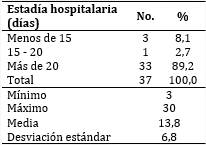 La mayoría de los entrevistados tuvieron una estadía hospitalaria mayor de 20 días, con un promedio de casi 14 días y como máximo 30 días (tabla 2).