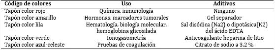 A escala internacional se conoce que existe un código de colores para aspiradora (cuadro 1), según su uso y aditivos en los laboratorios.10,13,14