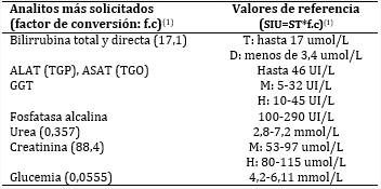 En investigaciones internacionales publicadas, solo por citar un ejemplo,17 analitos como la glucemia se expresan todavía en el Sistema Tradicional de Unidades (ST); en el Laboratorio del Hospital Provincial Clínico-Quirúrgico Docente Saturnino Lora se informan en el Sistema Internacional de Unidades (SIU), por lo que es válido incluir el f.c de las determinaciones más solicitadas, para que los investigadores de dicho hospital realicen la conversión y así sus resultados puedan compararse con los de otros autores.