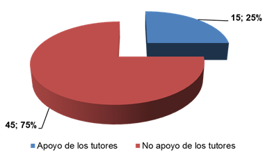 La figura muestra que la mayoría de los adolescentes encuestados (75,0 %) no tuvieron apoyo de padres o tutores legales.