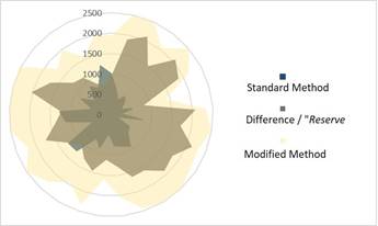 The difference between the value obtained with the modification and the standard procedure behaves as an independent data set, intermediate between the two sets of starting data. The average value was 1498.61±160.68 pg*mL-1. The three data sets did not reflect equality (p=0.0003-23). With respect to the typical EGF value, the differences were large (g=7.976), as well as with respect to the alternative EGF values (g=7.0291). This "reserve" value behaves similar to a transition value, as shown in fig 2.