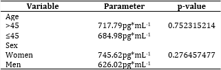There were no significant differences in EGF values, according to the standard method, between sexes or age groups, as shown in table 2.