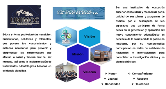 La Universidad de Medicina Oral de Coahuila cuenta con misión, visión y valores bien definidos (figura 2) sobre los que se trabaja arduamente para lograr una docencia de calidad.