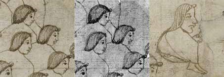 Lafragua 5r was also altered, albeit in a different manner. While previously both Sepúlveda y Herrera and Doesburg and colleagues recognized several interventions in them, we are not entirely in agreement with their assessment.42 They suggest that the three central figures of Lafragua 5r (fig. 14 on the right), whose outline is now a coffee color, were added later than the rest of the figures whose outline is black. We rather consider the coffee colored figures to be part of the initial stage, the darker and crisper outline of head and hair of the crowd being a later addition. The figures in profile in the crowd, in fact, had an elongated skull shape and hairdo similar to the central figures, still somewhat visible underneath the darker black hair (fig. 14, middle). The figures drawn from the back are made with the same dark ink, and are in a distinctly European style that tries to introduce some perspective into this scene by portraying them from behind (fig. 9). This seems a reverse case to the one previously discussed. The artist who employed a more indigenous style drafted the earlier version, on top of which the artist more confident in Western conventions intervened. Perhaps the two tlacuilos were working hand in hand and adding to one another’s intervention. It is in fact noticeable that the central and intermediary figures, which we interpret as priestly males, following a suggestion by Jansen and Pérez Jiménez, were not altered, remaining more clearly in a precolonial manner, while the superimposed stylistic interventions were done on the crowd that is drawn with a characteristic Western flare.43 Finally, there seems to have been a clear intent to remove the birds carried by the priestly figures. These may have been objects of power given to the political rulership, thus signaling a dangerous mixing of sacred and civil authority common among indigenous communities, but despised by the Spaniards. Different styles, which point to different moments or even localities of production, may have corresponded to different ideological concerns in a rapidly changing political climate in Yanhuitlan, as will be argued below.