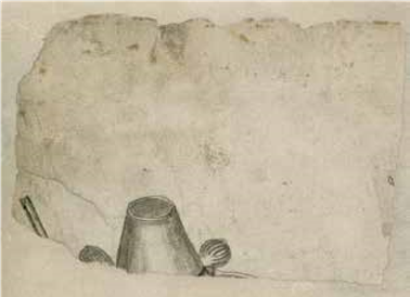 While the depiction of the four gods related to the veintena tribute periods seems valid, a small fragment slightly complicates the picture (fig. 5). In what is left of a corner of a page, the top part of a conical hat with cotton ball feathers attached to it is recognizable. The top ending of a stick is also visible on the left. Jansen and Pérez Jiménez identified it as part of the female deity on the left of AGN 504v.22 However, on a close inspection, the size, placement on the page, and orientation in relation to the structure of the paper makes this impossible. The headdress must have been located on the top left of a page and none of the extant pages fit this description. Conical hats with cotton balls are typical of the god Xipe (see, for example, Florentine Codex, vol. 1, f. 12r) or Toci and Tlazolteotl (see, for example, Codex Borbonicus, p. 13) in the Central Mexican pantheon. The conical hat is also an attribute of Quetzalcoatl, although the stick he carries is usually curved. Finally, Codex Vienna, p. 26, depicts a procession of eight characters in what has been interpreted as a harvesting ceremony.23