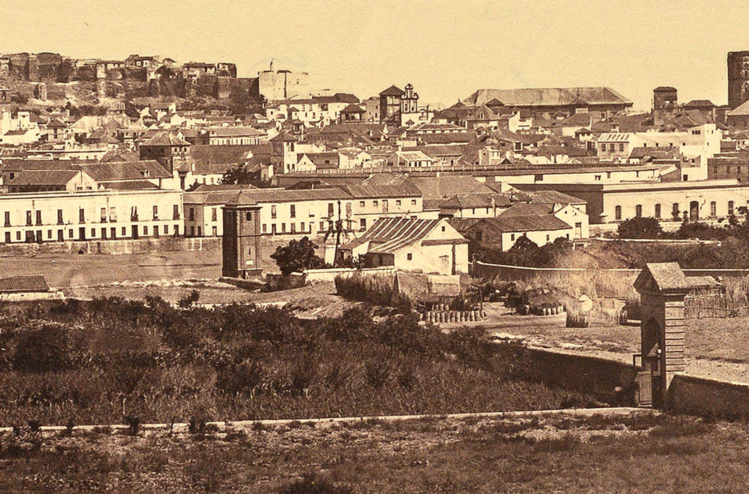 Aneja a la ermita de los Mártires se encontraría la Huerta de las Tres Cruces. Su nombre le viene dado por el triple crucero de piedra que existía frente al pequeño templo, al inicio del camino que, paralelo al río y a esta finca, conducía hasta otra ermita: la de la Aurora.86 No obstante, anteriormente se la conocía por Perdida y con posterioridad se llamó de Natera,87 siendo así como suele aparecer referida en la cartografía desde el siglo XVIII hasta su urbanización. El historiador Medina Conde la refiere también como de Martiricos, por razones evidentes, aunque hoy día suela identificarse con dicho nombre al área de la huerta colindante, situada en la otra margen del Arroyo de los Ángeles.88