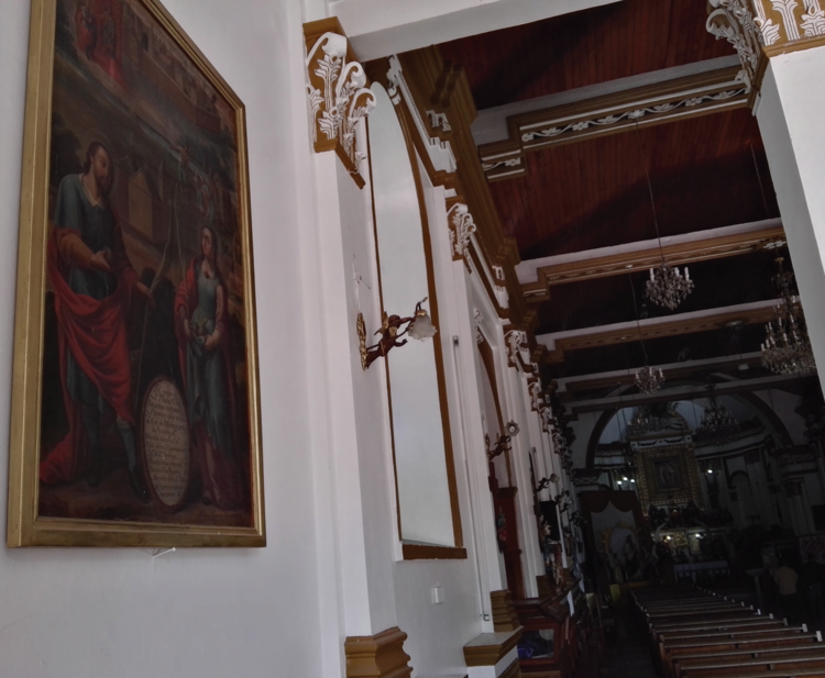 El hallazgo de un lienzo inédito de la relevancia del que aquí se presenta es siempre una feliz realidad. Más aún cuando en él se combinan, con suficiente calidad plástica, aportaciones iconográficas de carácter excepcional con nueva información sobre un autor cuya figura y producción permite rescatar y conocerlo mejor. El lienzo de san Ciriaco y santa Paula, mártires de época romana y patronos de la ciudad de Málaga (Andalucía, España), ubicado en el templo de la Virgen de Guadalupe en San Cristóbal de las Casas (Chiapas, México), fue pintado y firmado en México por el pintor novohispano Pedro López Calderón en 1716 (Fig. 1). En él confluyen, por tanto, múltiples y complejas realidades cuyo estudio permitirá recorrer desde la Nueva España de principios del siglo XVIII hasta la Malaca romana de las primitivas comunidades cristianas. Pero se toma como punto de partida aquel en el que de manera fortuita arrancó la presente investigación: el templo de la Virgen de Guadalupe en San Cristóbal de las Casas, México. El hallazgo de la obra, ubicada en el sotocoro del templo, del lado del Evangelio, se produjo de manera casual en el transcurso de otra investigación académica desarrollada en la región. Entre el heterodoxo conjunto de obras que allí se conservan, el lienzo que me ocupa destaca en calidad plástica y por su iconografía, pues aunque los santos y su martirio son un repertorio habitual en cualquier iglesia católica, la representación de Ciriaco y Paula resulta excepcional fuera de su ciudad de origen, dado lo limitado y exclusivamente local de su culto y devoción popular. Por lo demás, conocer la fecha y autoría de la pieza ha sido fundamental en un proceso marcado por la dificultad para conseguir datos de tipo específico.