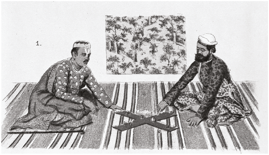 La insistencia sobre el estilo implica la necesidad de proporcionar una evidencia visual, ya que las rutas de las migraciones fue tema de debate. En un artículo escrito por Gordon Eckholm y Robert Heine-Geldern, "Significant Parallels in the Symbolic Arts of Southern Asia and Middle America", presentado en el XXIX Congreso de Americanistas que tanto impresionó a Covarrubias,17 los autores formularon una argumentación alrededor de las similitudes entre el juego de los mexicas el patoli, muy parecido en su diseño y cosmovisión (las cuatro partes del mundo) al parchis que se juega en India y en gran parte del sur de Asia (Figs. 2 y 3). Para Alfred Kroeber, el registro de dos juegos similares con las mismas reglas es sorprendente, pero no suficiente; para él, no era válido argumentar la existencia de relaciones entre culturas tan distintas a partir de un solo ejemplo. Esto alertó a los autores del artículo y decidieron contradecir la idea de una comparación excepcional. Eckholm y Heine-Geldern buscaron otros motivos para fortalecer la hipótesis de contacto que arraigan en varios elementos decorativos existentes en uno y otro continente, entre ellos, la flor de loto frecuente en el sur de la India, particularmente en el templo de Amaravati. Según el artículo, con características muy similares, este motivo también se encuentra en Chichén-Itzá, en el llamado Templo de los Tigres. La similitud formal, insistían, no sólo se da en las flores y las hojas sino en toda la planta, incluido el rizoma o tallo de la raíz que crece en forma horizontal bajo el agua. Mientras que las flores y las hojas se representan en forma naturalista, el rizoma es transformado en una forma decorativa y ondulante y ese mismo motivo está presente en Chichén-Itzá. Es sorprendente, dicen los autores, que en India y Mesoamérica el rizoma, una parte de la planta que no es normalmente visible, se convierta en el elemento básico del motivo, y más aún, que se haya estilizado a la manera de una enredadera.18