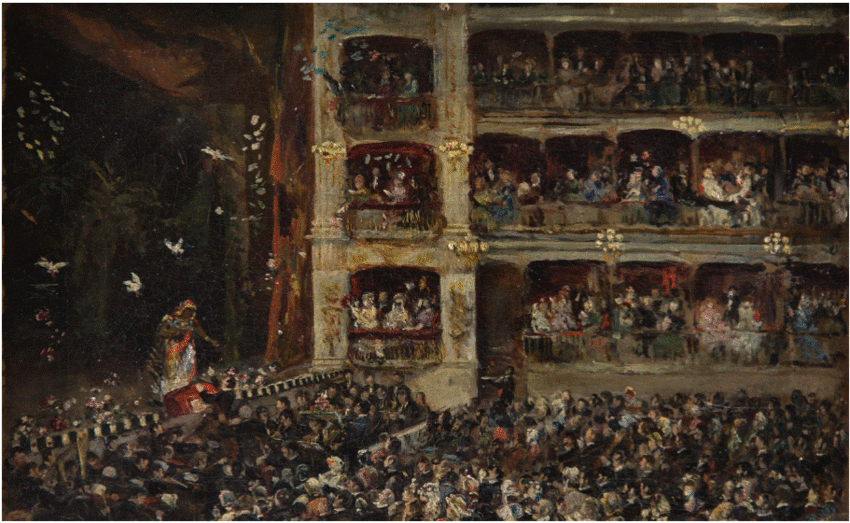 Si para Fernando Benítez en su obra La Ciudad de México, los espectáculos teatrales decimonónicos fueron "un libro del pueblo, escuela de costumbres, con la misión civilizadora de censurar taras sociales y popularizar la historia";89 la ópera representaba una oportunidad de conocer historias dramáticas aderezadas con música que el público mexicano supo valorar. El género lírico fue un entretenimiento de largo arraigo, la investigadora Montserrat Galí Boadella señala que para los mexicanos de mediados del siglo XIX la música fue un arte muy apreciado e intensamente practicado.90 En particular la ópera permitía a los espectadores transportarse a regiones remotas, imaginar lugares exóticos, disfrutar las historias de diferentes reyes y personajes célebres, y conocer trágicos relatos de amor. El auditorio se entregaba con verdadera pasión al disfrute de sus intérpretes, a valorar su talento y a demostrarles, sin cortapisas, su vehemencia absoluta, para lo cual se valía de diferentes medios.