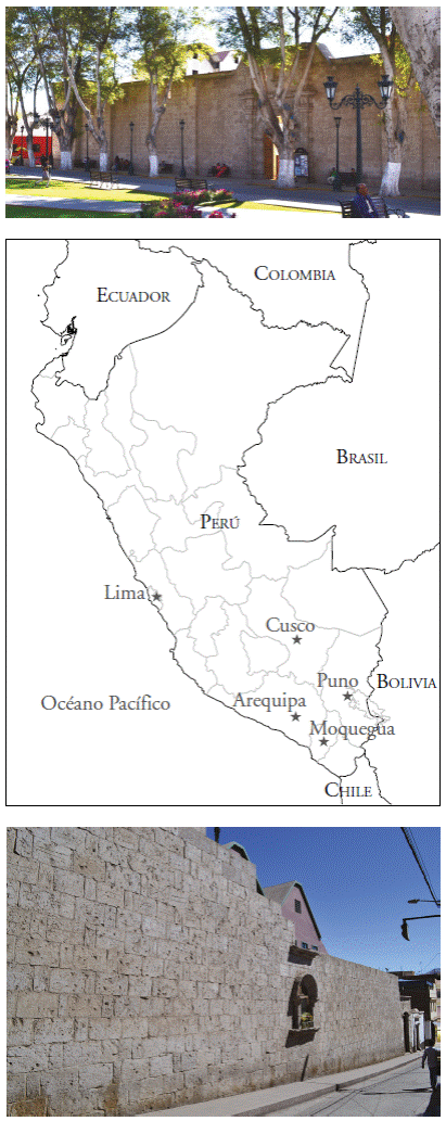 La iglesia Matriz de Moquegua -ciudad capital del departamento peruano del mismo nombre, ubicado al sur del país- ha estado signada por el infortunio: destruida varias veces por terremotos y erupciones volcánicas, el sismo de 1868 marcó su abandono definitivo; se salvó incluso de desaparecer a principios de este siglo, cuando una autoridad edil quiso demoler el muro de contorno que da a la plaza de Armas y la calle Tacna (Fig. 1). Esta pared sobreviviente de tantas vicisitudes es, hasta donde se conoce, el lugar con mayor concentración (en cantidad, variedad y densidad) de signos lapicidas o marcas de cantería del Perú y, tal vez, de Latinoamérica.