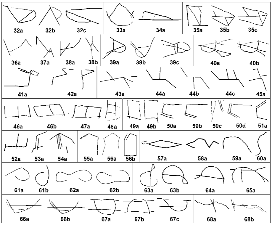 A pesar de su simplicidad, desde un punto de vista semiológico, estos signos responden a un proceso que, según Reveyron, citado por David Morel,39 se inscribe en una compleja red de relaciones provenientes de tres niveles de realidades: el motivo, el dibujo y la marca. El motivo es "un referente inmediatamente identificable a pesar de sus variaciones"; el dibujo es la "realización material del motivo que confiere a cada signo su carácter único", mientras que la marca "es una noción más compleja que asocia el motivo, el dibujo, una función y, eventualmente, una significación".