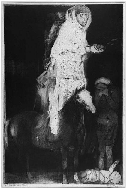 Lasansky was born in Argentina in 1914, where he began his studies in art and printmaking. In 1943 he received a Guggenheim grant to study in New York and remained in the US for the rest of his life -attaining citizenship in 1952.87 In 1953 Lasansky received another Guggenheim grant, this time to study for one year in Spain and France. As a result of that trip the artist was able to experience life in the country under Franco, and deepen his study of Spanish art. In a biographical essay, the critic Carl Zigrosser wrote that Lasansky:
