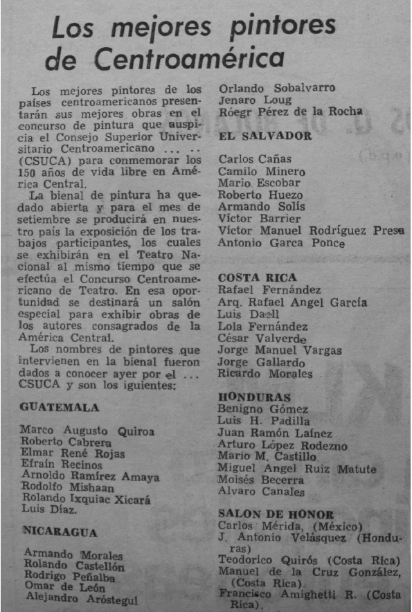 Keywords: Art contest, Central American art critic, Central American painting, Central American modern art, art critic.