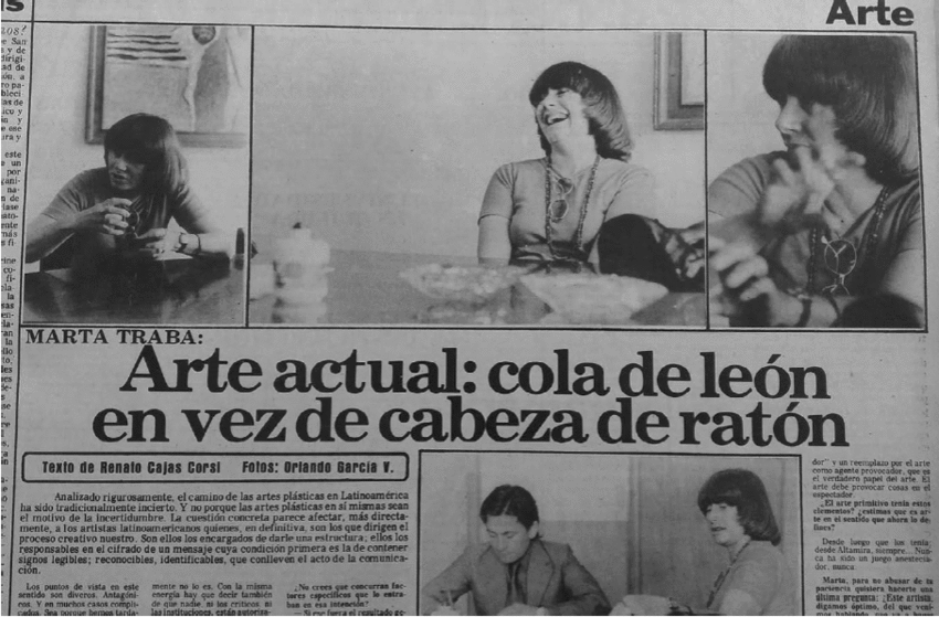 De regreso a septiembre de 1971, el periodista Enrique Tovar le preguntó a Traba por qué su postura era tan contundente con la generación de artistas de la segunda mitad del siglo XX, a ello la crítica le contestó: "Porque es idiota plagiar. Estos pintores latinoamericanos copian principalmente a los norteamericanos [...] no hablemos con eufemismos. Digamos las cosas con claridad."50