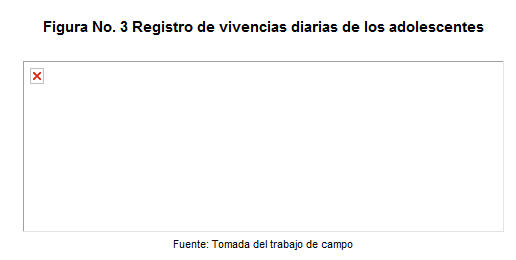 “En la clase de tecnología--me siento aburrida” (Adolescente 15 años), “Día de Halloween en la preparatoria” (Adolescente, 18 años), “haciendo la maqueta de biología jeje esta kedando bn fea-- :D me siento entusiasmado” (Adolescente, 16 años).