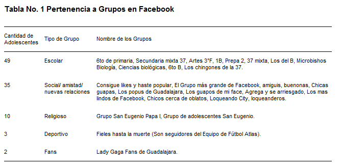 En la tabla número uno se presentan algunos de los grupos de los que forman parte los adolescentes.