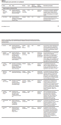 Se encontraron un total de 74 títulos, de los cuales 12 fueron excluidos por ser artículos de revisión o artículos teóricos.Once se excluyeron por no tener disponible el texto completo, por no estar en idioma inglés o español, o por ser resúmenes correspondientes a presentaciones en congresos científicos. De los 51títulos que forman parte de este trabajo, 7 estaban orientados a niños y/o adolescentes y a sus familias, mientras que el resto estaba dirigido a pacientes adultos. Entre ellos, se incluyen pacientes con síntomas depresivos, con bajo nivel académico, con otras comorbilidades, entre otras especificidades.