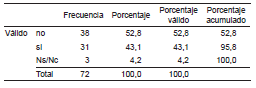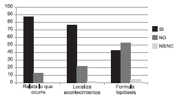 3. También, se verifica que es menos frecuente la posibilidad del sujeto de formular una hipótesis sobre la causa de sus síntomas. Corresponde al 43,1%, es decir menos de la mitad de los casos (Tabla N° 3 y Gráfico N° 1).