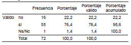 1. De un total de 72 casos que presentan situaciones de violencia familiar, 63 puede hacer un relato sobre lo que le ocurre, lo que representa aproximadamente el 87,5% de los casos (Tabla y Gráfico N° 1).