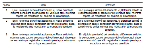 Se observa en la Tabla 2 que el contenido del mensaje fue idéntico entre fiscal y defensor. Ambos argumentaron lo mismo. Lo que varió fue el rol del emisor, la función que cada uno cumple desde su tarea en el proceso judicial.