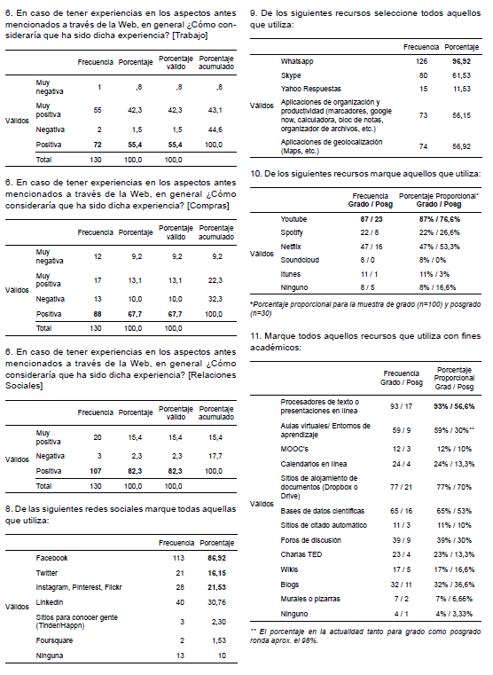 En las entrevistas cualitativas se observa una utilización marcadamente menos resistencial a distintas implementaciones y posibilidades. Los docentes refieren un uso más amplio de la tecnología siendo casi un imperativo que aparece en los discursos la incorporación de distintos recursos para favorecer los aprendizajes en los diferentes contextos de estudio (estudiantes del interior de Argentina o extranjeros, mayor flexibilidad en función de “profesionales” que tienen compromisos laborales, etc.)