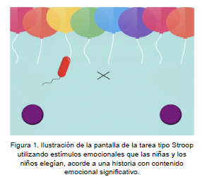 Existen múltiples versiones de tareas tipo Stroop emocional, algunas de las cuales utilizan palabras, como en la versión original de la prueba, mientras que otras utilizan estímulos pictóricos. La ventaja de este último tipo de tareas radica en que se ha encontrado evidencia que indica la presencia de una mayor reactividad frente a imágenes que frente a palabras (Lees, Mogg, & Bradley, 2005) y su posible utilización en poblaciones en las que la habilidad de lectura no se encuentra desarrollada (Scrimin et al., 2018). En este sentido, dada importancia del estudio de la inhibición y el procesamiento emocional en niñas y niños en edad preescolar, etapa durante la cual se desarrollan dichos procesos (Zinchenko et al., 2019), las tareas tipo Stroop pictóricas aparecen como una herramienta de suma utilidad.