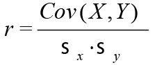 donde Cov (X,Y) es la covarianza de la dos variables y S x⋅ S y