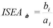 donde ISEA ab es el índice de segregación espacial local para la categoría poblacional b respecto del total de población a; ai es el porcentaje de población que contiene cada unidad espacial; bi es el porcentaje del grupo de población en cuestión.