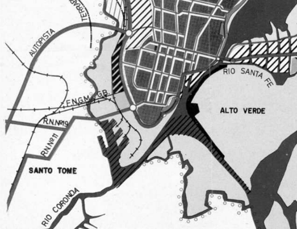 Así mismo, el formulado proyecto hidroeléctrico Paraná Medio forzaba, de algún modo, a realizar una reestructuración de las comunicaciones (vial y ferroviaria) de la ciudad y una revisión de sus patrones de crecimiento. Sumado a esto, CITRONI24 considera que existía cierta presión hacia el gobierno para que saliera a la luz el tan promocionado y largamente esperado plan urbano. Por lo cual, cobra cierto sentido la urgencia que, ante la presión de los medios y la necesidad de hacer visible la voluntad de cambio, lleva al gobierno de facto, en 1980, a publicar un plan que había sido elaborado en su mayor parte con formulaciones de principios de los 70, con ideas notablemente desfasadas respecto del momento histórico, más aún, intentando capturar la situación del momento con herramientas y propuestas de décadas anteriores.