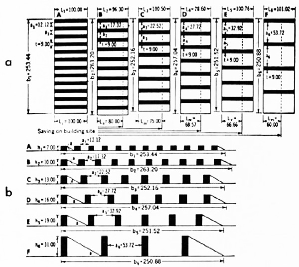 Fuente: ponencia “Casas altas, medias y bajas”, Walter GropiusLos estudios de W. Gropius sobre la altura de los edificios, plasmados en la ponencia del CIAM de 1931 con el título “¿Edificios medios, altos o bajos?” son una aportación fundamental a la discusión en este proceso de racionalización en la planificación urbana. Este estudio discutía cómo mejorar el soleamiento, y con ello las condiciones higiénicas de la vivienda, y cómo optimizar la capacidad de producción basándose en la disposición racional de los edificios y densidad edificatoria en los nuevos conjuntos de vivienda masiva, mediante la repetición y en la producción en serie.