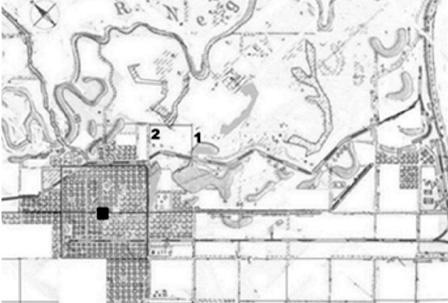 La “ciudad rica y feliz… moderna… con edificios suntuosos”, descripta oficialmente en 19357 como caracterización de Resistencia, en realidad se restringe a pocas manzanas de la “planta urbana” correspondientes al “centro” y las mejores residencias. En contraste, al este de la “planta urbana” y hasta el curso del río Negro existe un área marginal que abarca varios lotes rurales, con depresiones y rodeada de lagunas semilunares. Ahí trabajan ladrillerías, que ocupan población alojada precariamente en las inmediaciones, alguna en forma temporaria por su periódica ida a la cosecha, cuyos hijos son los primeros alumnos de la escuela N.º 336.