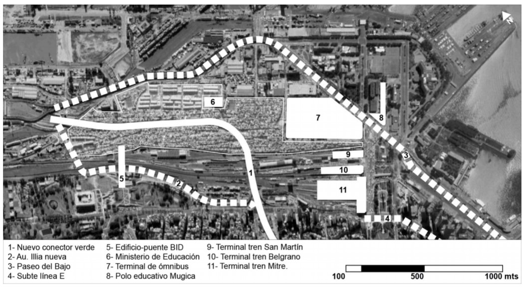 Cabe resaltar el rol que se atribuye el BID como puente, tanto en términos simbólicos como materiales, entre dos grupos sociales. El organismo multilateral de crédito busca erigirse así como pieza fundamental de la integración, e intenta consolidar dicho imaginario a través de la construcción de una estructura perdurable. Las reservas planteadas por los vecinos en el marco de la audiencia pública, a su vez, llaman la atención sobre la peculiar decisión del gobierno de la ciudad de cederle el uso de la tierra por 100 años. Mientras que a los vecinos —quienes habitan un barrio casi centenario— se les cobrará la tierra en el marco de la urbanización, al BID se le otorga una cesión gratuita. Hay que detenerse en este punto: al cobrarle la tierra a los vecinos del barrio, el gobierno de la ciudad está partiendo de un paradigma que establece que la ocupación de los vecinos es ilegítima. A contrapelo de lo que dictan las leyes de urbanización, en la práctica el gobierno perpetúa el imaginario según el cual el villero habita de manera ilegal la ciudad.