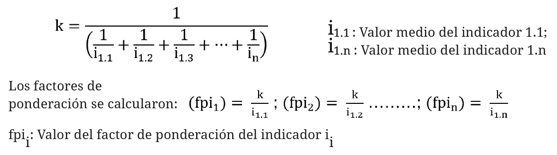 De esta forma se obtuvieron los valores finales de los factores de ponderación de cada indicador dentro de su dimensión correspondiente para los tres grupos de actores encuestados. La fórmula se aplicó de igual manera para la ponderación de las distintas dimensiones.