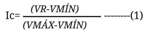 Con respecto al modelo metodológico, en el análisis se consideran dos variables: como variable independiente el índice de ingresos municipales (I_IMUN), que mide el nivel de ingresos en cada una de las ciudades considerando ingresos ordinarios y federales. Como variable dependiente, el índice de desarrollo sustentable (I_IDS), que incluye aspectos económicos, sociales, ambientales y territoriales. Dicho índice trata de medir el grado de sustentabilidad a nivel local de las ciudades consideradas (tabla 2). Estos índices fueron diseñados por medio de la media geométrica de cada uno de sus componentes. Para el análisis y unificación de los datos, se efectúa una estandarización de acuerdo con la metodología de Sepúlveda (2008, p. 32), según la cual Ic: índice del componente; VR: valor real del indicador; VMÁX: valor máximo del indicador; VMÍN: valor mínimo del indicador (ecuación 1).