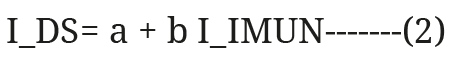 Para la comprobación de la hipótesis se utilizaron herramientas estadísticas, en este caso el programa estadístico IBM SPSSv21 para la regresión y con el fin de obtener la relación existente entre el I_IMUN y el I_DS. Además, los resultados del análisis se aceptan siempre y cuando se cumplan los siguientes parámetros: si es mayor a 0.60 con una significancia menor o igual a 0.05. La relación que se expone deriva del análisis de regresión lineal que se aprecia en la ecuación uno, donde: I_DS: valor predictivo de la variable dependiente; a: intersección de la línea recta con el eje Y; b: pendiente de la línea recta; I_IMUN: valor de la variable independiente (ecuación 2).