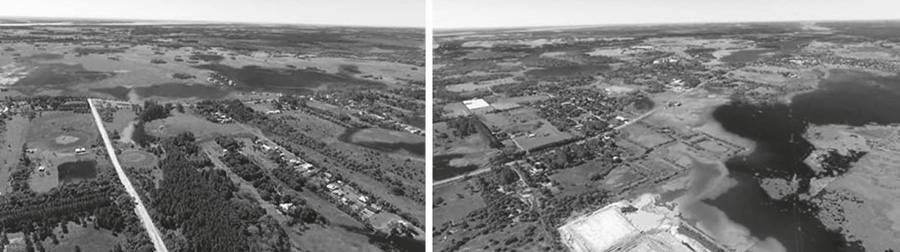 La mayoría de estos barrios se localizan hacia el interior del territorio en “lagunas de lomadas arenosas”, constituidos por “lagos someros” y humedales interconectados y con alta fluctuación en sus niveles de agua (Contreras & Ojeda, 2018). Estos son rellenados o intervenidos incluso hasta su desaparición. Lo mismo ocurre con aquellos localizados en la costa, que contribuyen a la polderización de áreas inundables, la construcción de canales artificiales, la destrucción de bosques ribereños. De esta manera se avanza en el acaparamiento y privatización de bienes comunes donde el paisaje pasa a ser una excusa, una estrategia de mercado que “desprecia las valoraciones posibles del paisaje real y sus significados pretéritos” (Pintos, 2017, p. 25). Se destruye su valor colectivo en términos ecosistémicos y sus servicios ambientales como mitigadores de las inundaciones.